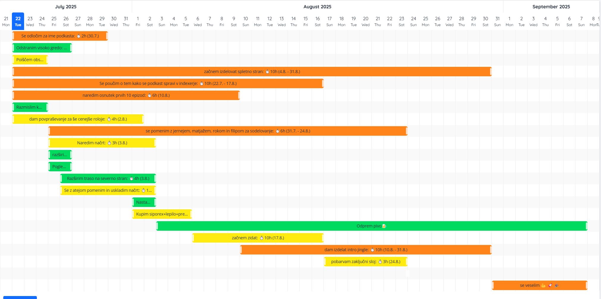 I have written in 22 new tasks, and have written also due and start dates to get them into the gannt chart.