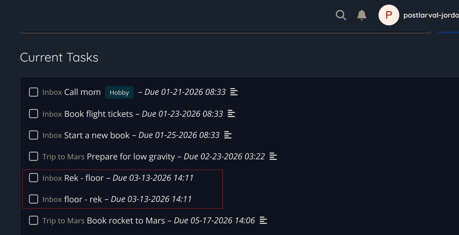 Vikunja created a task called ‘Reation - Floor Bath’ with a due date of November 2nd.