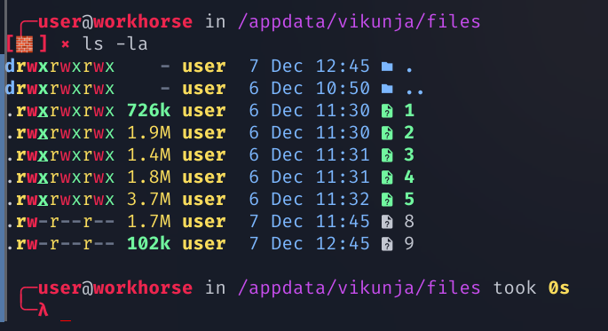 It doesn’t seem to be file permissions. Uploading a file using the website gives the file the same permissions, but doesn’t cause the error. File “9” below is has the same permissions as file “8” which is causing the problem, but its task doesn’t cause any problems.