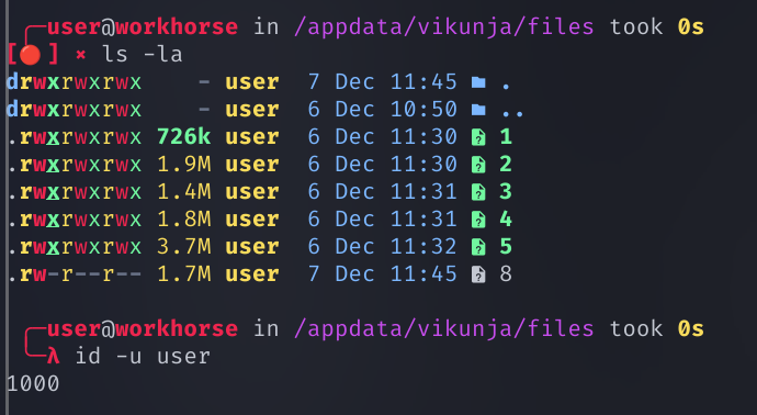 Modifying the file permissions for file “8” to “777” still gives a permission error when attempting to view the project with the broken image. I suspect that the file entry is not being stored in the database correctly when uploaded using the app.