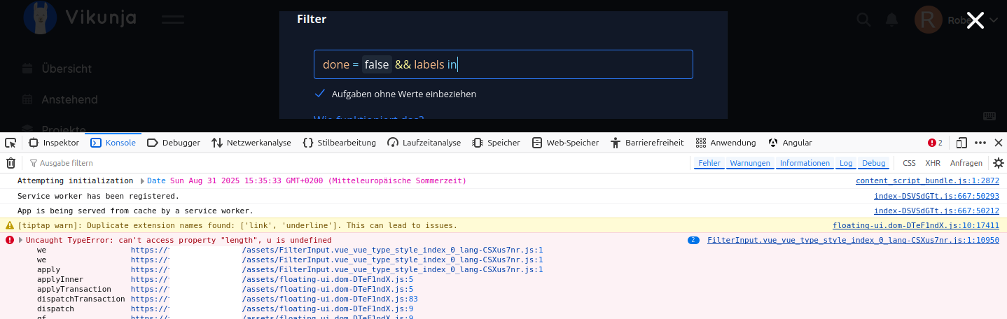 Edit: I have updated from the current stable version with existing tasks, filters, labels etc.